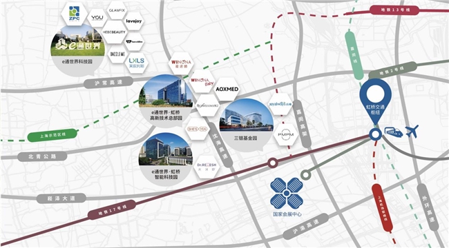 作为中国领先的美妆产业创新平台运营商,e通世界产业园深度聚焦美丽健康产业,地处上海大虹桥核心腹地,具备向内联接市区、向外融入长三角的产业资源互通枢纽优势,稀缺104地块可办理环评、电力扩容、生物安全等级认证等,为美妆研发型企业发展提供便利。