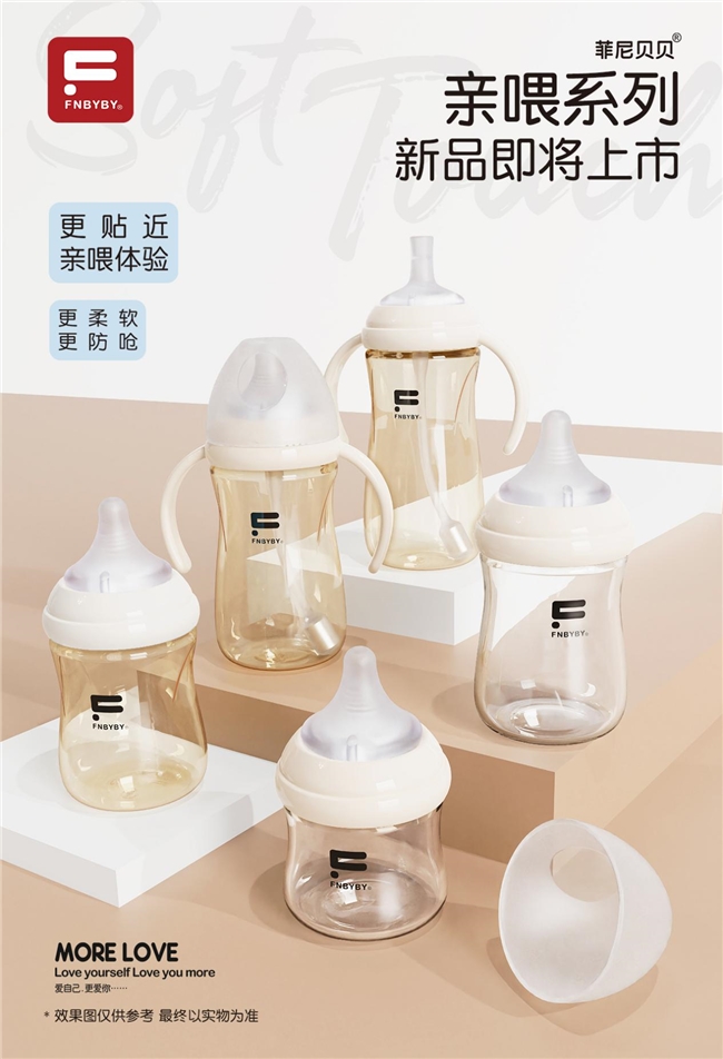 同步亮相的 5 款奶瓶新品,则聚焦0-3岁宝宝的精细化喂养需求,以打造 “仿母乳亲喂体验” 为核心研发方向。产品采用创新食品级硅胶材质,搭配贴合宝宝口腔结构的流线型奶嘴设计,不仅能高度模拟真实母乳的柔软触感,还能引导宝宝形成科学吮吸节奏;同时,优化后的奶嘴流速适配不同月龄宝宝的吞咽能力,有效减少喂养过程中宝宝吸入空气的概率,从源头缓解胀气、吐奶等问题。
