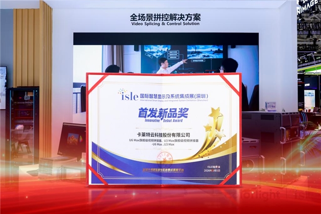 日前在深圳闭幕的ISLE 2026国际智慧显示及系统集成展上,卡莱特展出的U6 Max与U3 Max旗舰级视频拼接器荣获展会“首发新品奖”。作为U系列拼控家族的最新成员,两款产品在专业评审环节获得一致认可,成为本届展会拼控细分领域的亮点之一。