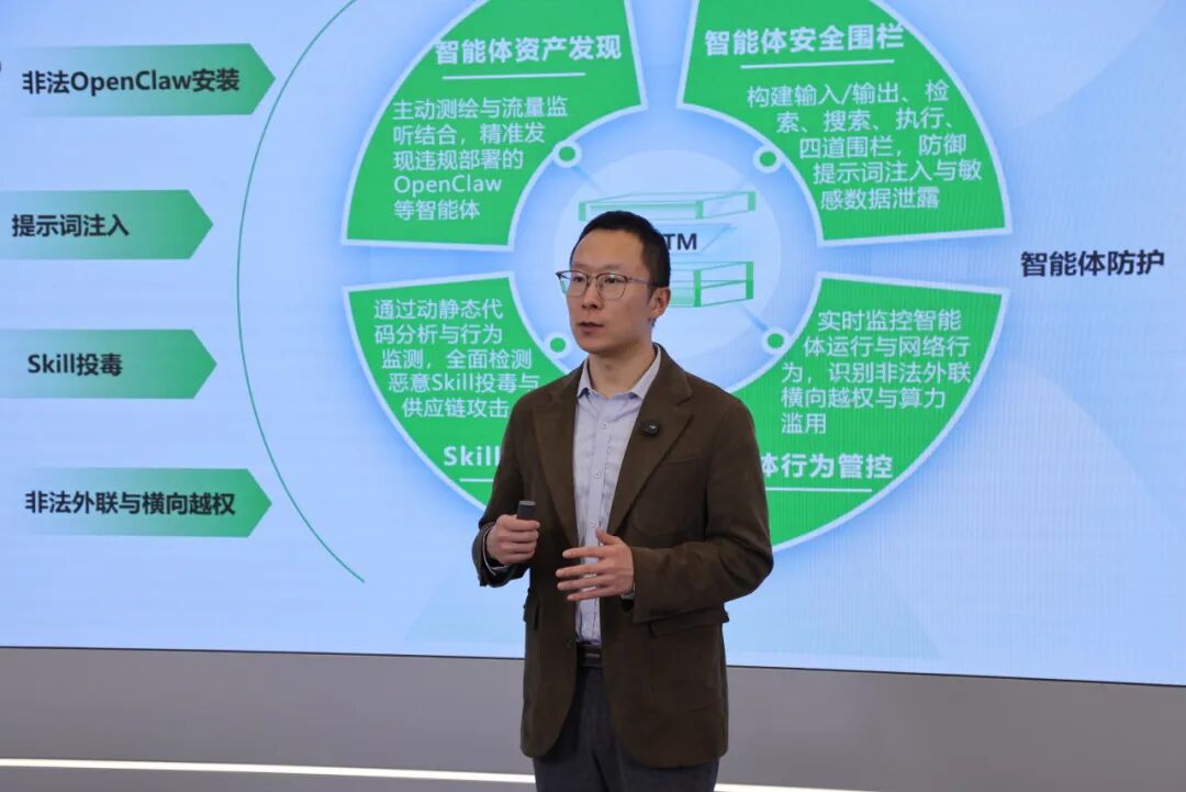 OpenClaw的普及让“人人都能玩智能体”,然而,其安全能力的结构性缺失,让每一次便捷操作都可能踩雷。绿盟科技天枢实验室主任研究员顾杜娟博士带来《“龙虾”热潮下的智能体安全:安全技术体系与产品落地路径》的主题分享,围绕企业在智能体时代面临的安全新挑战展开,系统说明安全边界如何从传统的大模型内容安全,进一步演进到面向Agent系统、工具调用、执行链路与运行环境的整体安全治理。